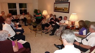| Senior missionaries listen to Pres Jeppson's Church humanitarian aid briefing for northern Jersey after Hurricane Irene. |